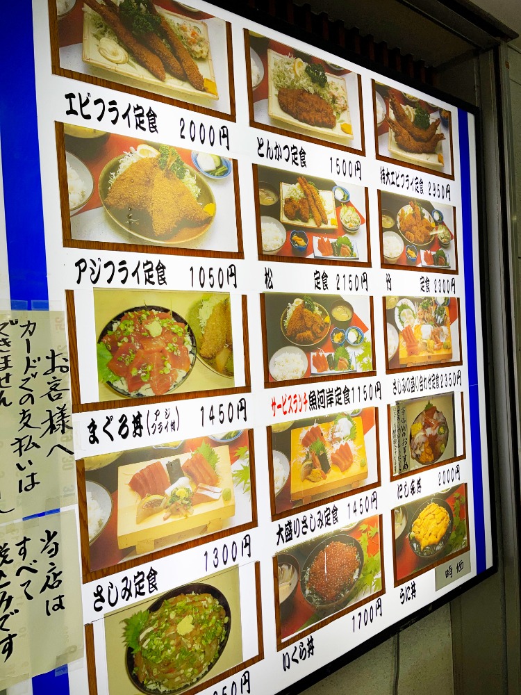 刺身定食、煮魚定食、海鮮丼、トンカツ定食など80種類以上。何にするか迷ってしまいますね。。